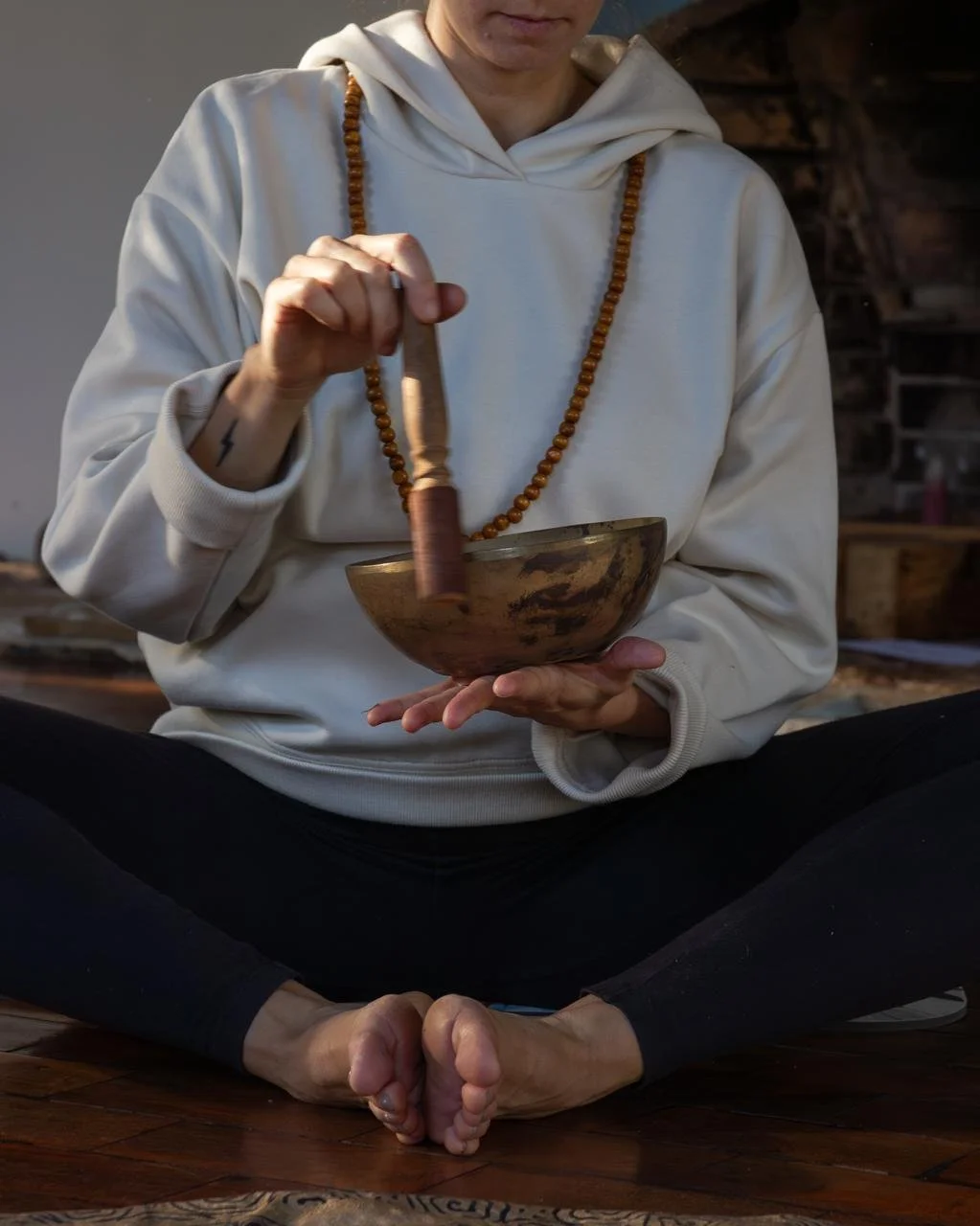 Los cuencos tibetanos, la música y otras vibraciones armónicas envuelven el espacio.